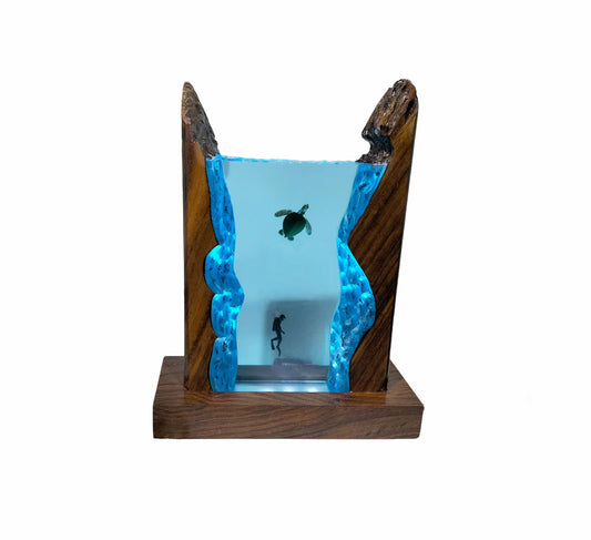 Epoxy Resin Manta Ray And Diver Night Lamp