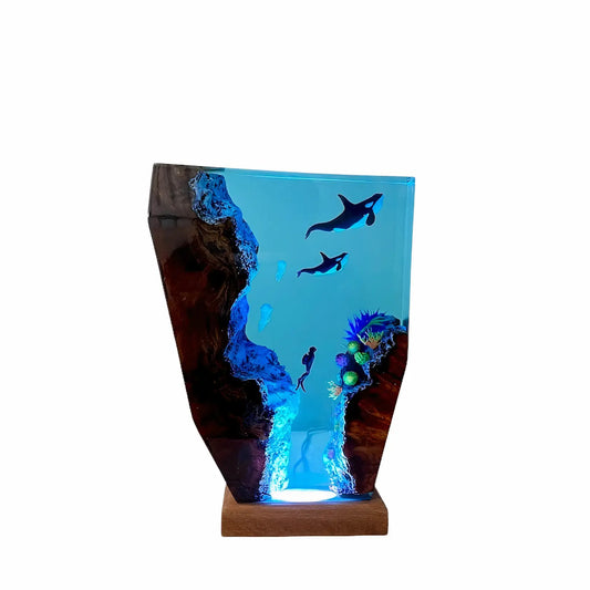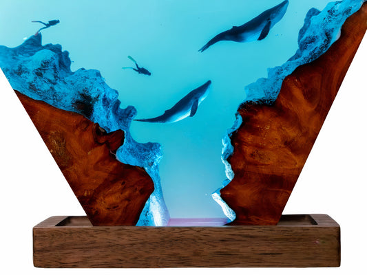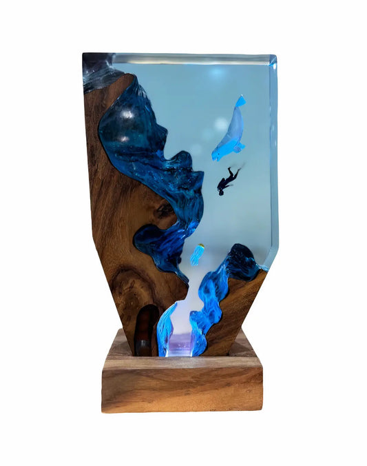 Resin and Epoxy Beluga Whale and Diver Lamp