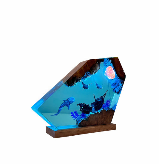Resin Epoxy Whale Shark And Manta Ray Lamp